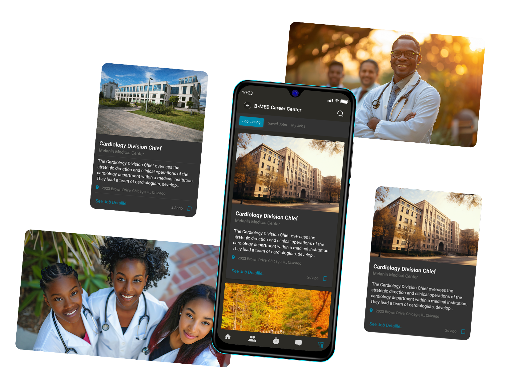 The B-MED App provides a supportive environment for historically marginalized clinicians, including the community of Black physicians who remain underrepresented in many specialties. Employers benefit from being present inside a trusted and mission aligned space where candidates explore their future.